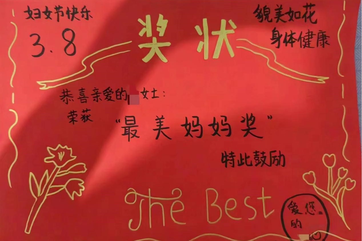 初2109班进行了文明礼仪主题教育,还举办了给妈妈们绘制奖状的活动,每位同学自己动手在彩色的纸上书写对妈妈的爱和祝福。