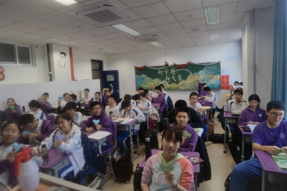 初2117班的同学在班主任的带领下学习折了一颗心,同时将“心”藏在家里的某个角落,再写下一句话作为提示,请家长寻找“心”。活动加强了仪式感,促进亲子关系,更好地对家人去表达感恩与爱。