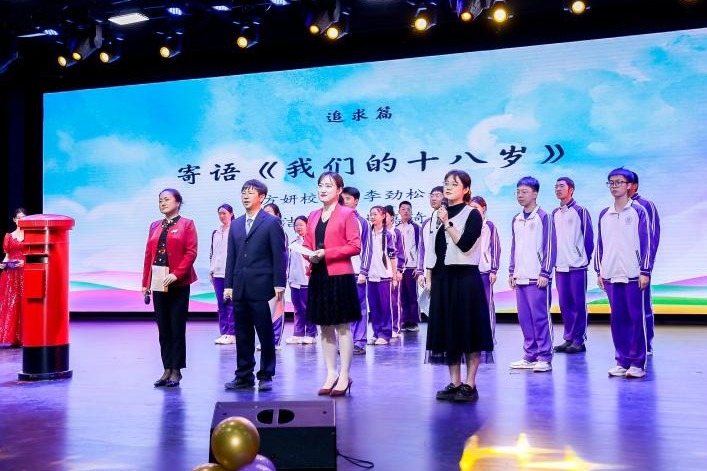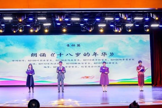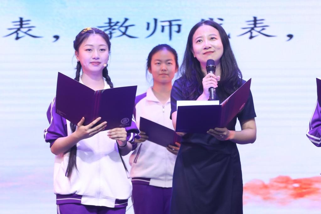 幼鸟将要离巢,蓄势待发之际,家长们心中有无限叮咛与嘱托。高2112宋兆涵家长,高2103解敞智家长,高2107邵姝静家长作为代表深情朗诵,抒发了对子女的爱与期冀,同时向老师们送上最诚挚的谢意。