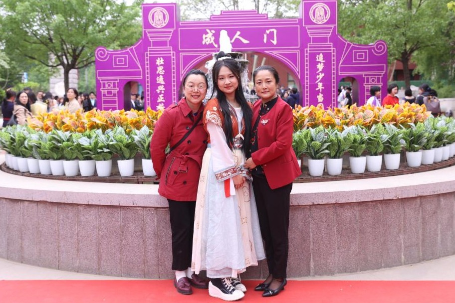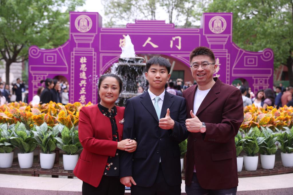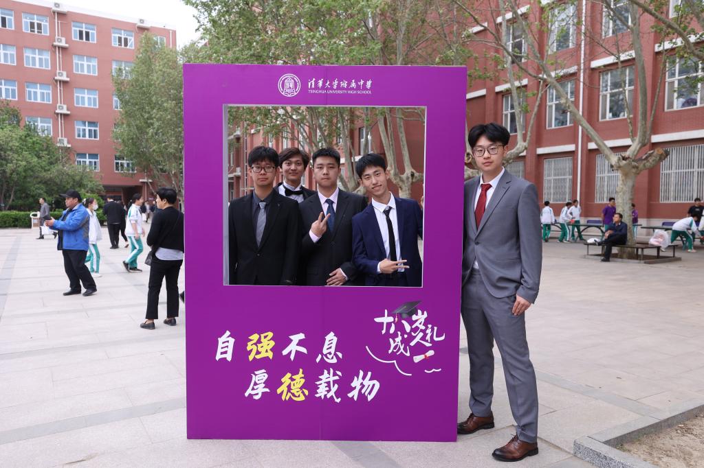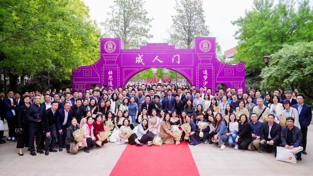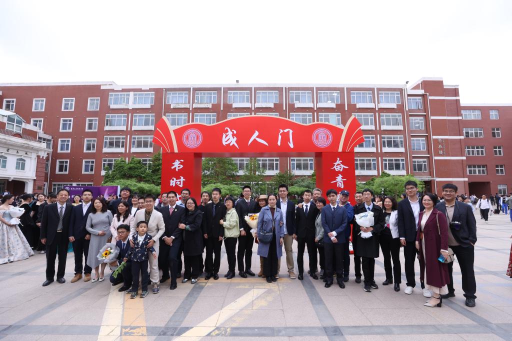 仪式结束后,老师、同学们和家长来到校园合影。走入广场,仿佛置身于时光隧道,幼时的影像,高中三年的点点滴滴,随着照片的画面一起涌来,让同学们真切地感受到成长的力量和师生之间真挚的情谊;校园中,朝气蓬勃、风华正茂的高三学子,在老师和家长的欢呼、祝福中,走过象征感恩与责任的“成人门”,留下自己自信的笑容与挺直的脊梁。