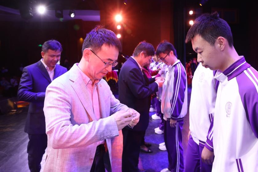 随后,领导为学生代表佩戴徽章。成长、责任、追求,这是人生中不变的注脚。愿这枚徽章见证着同学们的的成长,见证着同学们未来的辉煌。