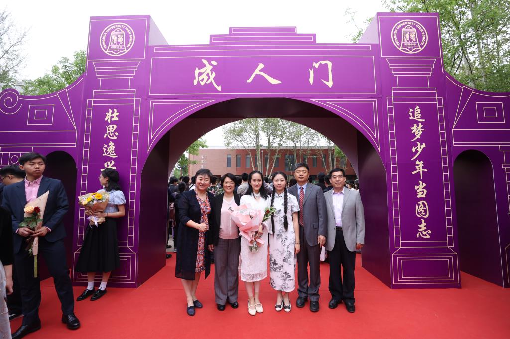 聆听了习近平总书记对青年的殷殷嘱托,学生代表走过成人门,走过那扇象征成人的大门,即将驶向生命的新航程,迎接未知的挑战和美好的明天。