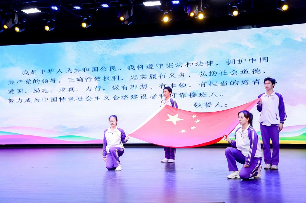 十八岁,立报国之大志,成有为之青年。同学们面向国旗庄严宣誓:做有理想、有本领、有担当的好青年,努力成为中国特色社会主义合格建设者和可靠接班人。