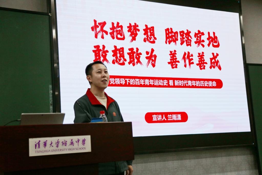 4月25日中午,bg真人试玩学生业余党校邀请清华大学公共管理学院学院博士生、清华大学博士生讲师团团长兰雨潇以《怀抱梦想又脚踏实地 敢想敢为又善作善成——从党领导下的青年运动史看新时代青年的历史使命》为题目做专题讲座。bg真人试玩校团委书记于洺老师,学生会指导老师娄赛赛,来自高一、高二的四十余位学生业余党校学员参加了此次活动。