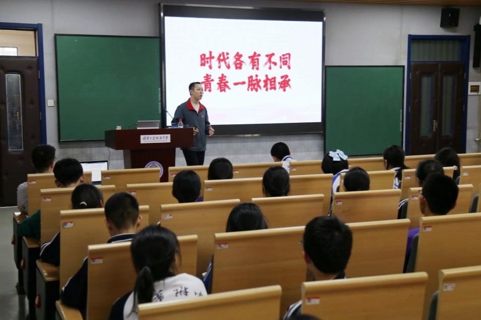 在社会主义革命和建设时期,“党有号召,团有行动”,中国青年站在巩固新生人民政权的最前列。他们组建青年突击队、青年垦荒队、青年扫盲队,开展学雷锋活动,激发“敢教日月换新天”的豪情,喊出“把青春献给祖国”的响亮口号,向科学进军,向困难进军,向荒原进军,展现出敢于拼搏、辛勤劳动的精神风貌。通过向同学们讲解习近平总书记的七年知青岁月,兰雨潇讲师让同学们明白了 “建国一代”在青年时期是如何上山下乡、保家卫国、艰苦创业,把青春融入祖国广阔的山河。