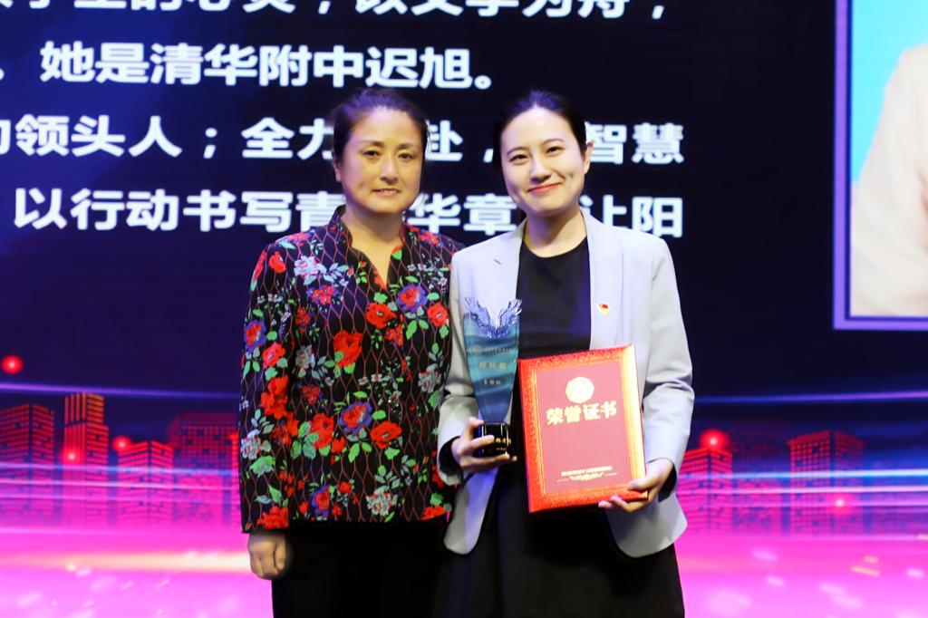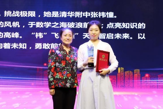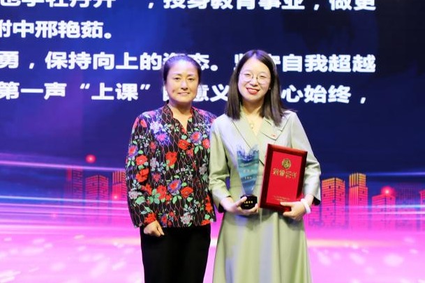 方妍校长为获奖教师张祎憧颁奖
