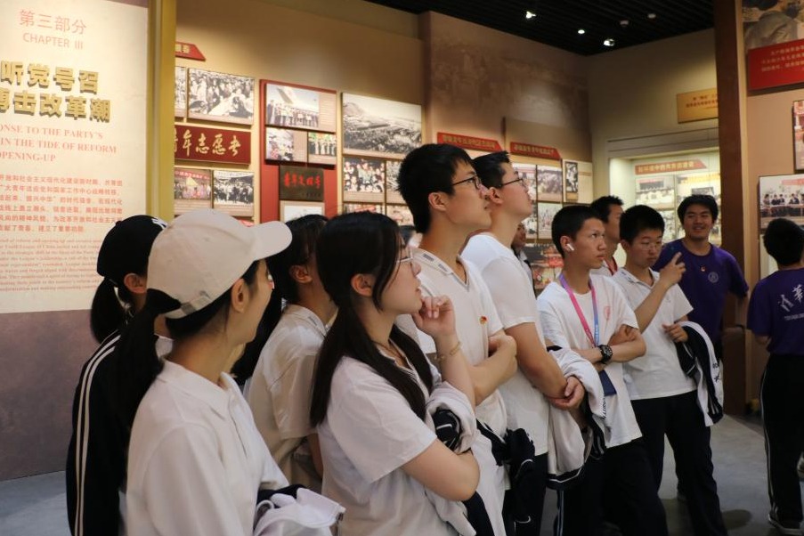 同学们认真参观青运史展览