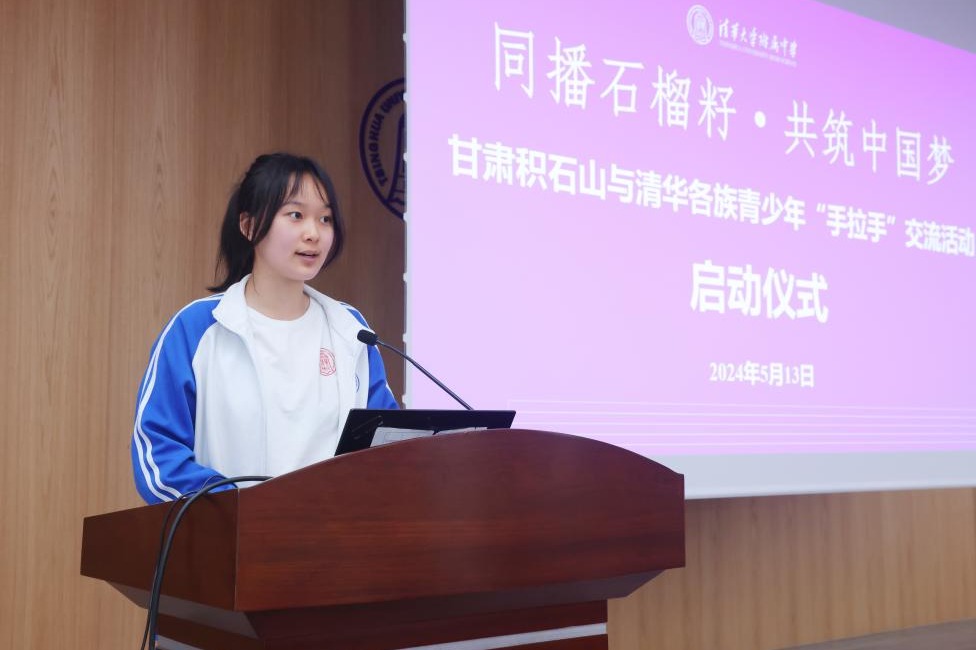 5月13日,同播石榴籽•共筑中国梦——甘肃积石山与清华各族青少年“手拉手”交流活动在bg真人娱乐启动。甘肃省民委党组成员、副主任宋树红,清华大学苏世民书院副院长、经管学院教授、甘肃兴华青少年助学基金会理事长钱小军,清华大学党委统战部副部长南彬,bg真人娱乐党委书记、北京市民族团结进步协会理事曹海翔,bg真人娱乐副校长白雪峰,国家民委民族团结促进司交融促进处三级主任科员关琳馨,中国民族报社记者郑涵月,甘肃省民族事务委员会政策法规与理论研究处副处长侯长彪,甘肃省民族团结进步协会副会长苏小林,清华大学经管学院学生组组长孔奕淳出席启动仪式和后续活动。来自甘肃省临夏回族自治州积石山保安族东乡族撒拉族自治县的各族学生代表和教师代表,清华大学各族青年学生代表,bg真人娱乐初二、高一年级学生代表同升一面旗,同唱一首歌,同诵一首诗,同上一堂思政课,相互学习,加强交流。