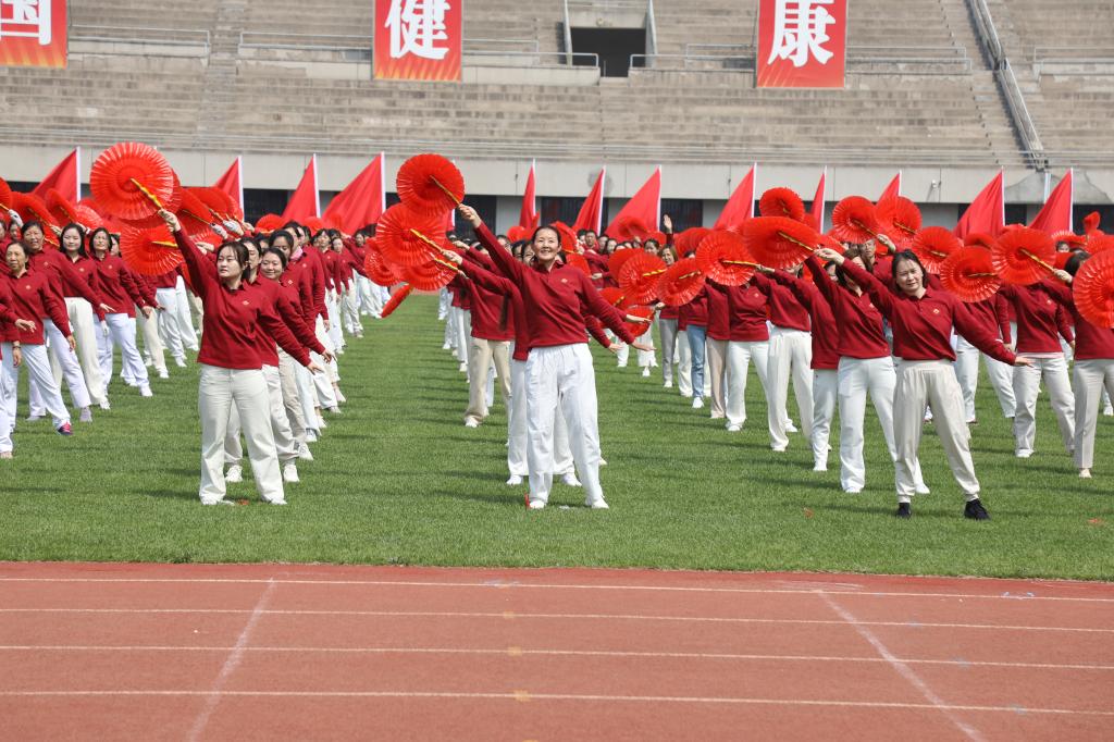 本次教职工运动会开幕式表演延续了往届健身操的项目。附中的老师们克服时间和工作上的困难,身体力行,积极参与,响应清华大学力争“为祖国至少健康工作五十年”的号召。