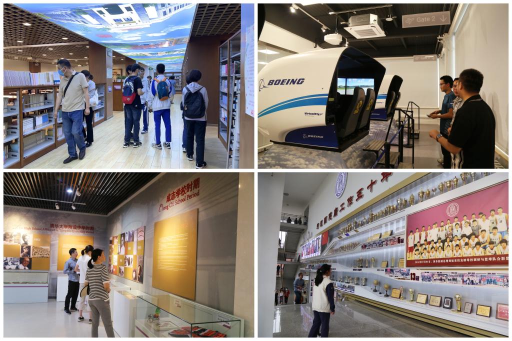 bg真人娱乐的办学成果展,展出了教师团队、课程体系、学生活动、育人成绩等内容,展示了bg真人娱乐的教育资源和特色办学成果。学校开放了校史馆、教学楼、图书馆、波音·牛顿飞行学院、通用技术实验室、标本馆、体育馆、宿舍、食堂等学生学习、研修及生活的硬件设施。来访的学生和家长在校园内驻足欣赏,体验附中校园生活,沉浸式感受学校的教育教学特色。