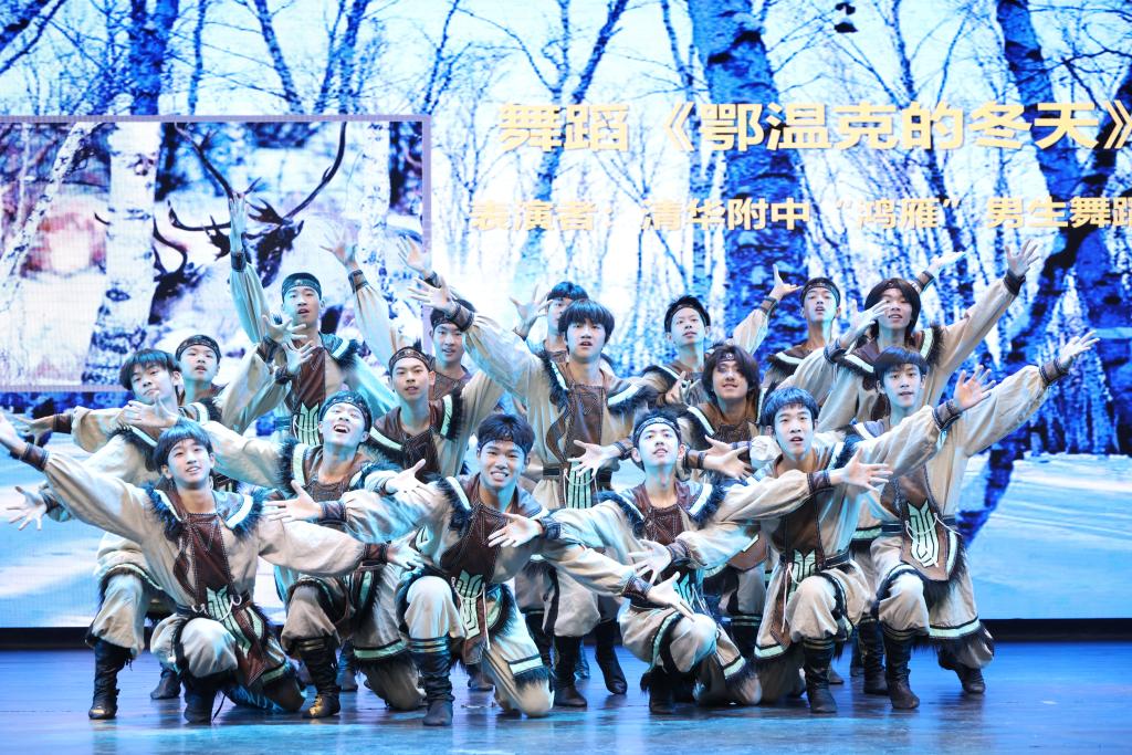 bg真人娱乐“鸿雁”男生舞蹈团带来舞蹈《鄂温克的冬天》