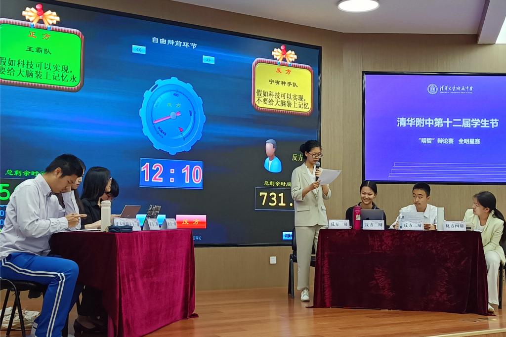 “明哲”辩论赛全明星赛,汇聚了思维敏捷、口才出众的辩论高手,他们就“如果科学可以实现,要不要给大脑装上记忆永存装置”这个辩题激烈交锋,展现了附中学子深邃的思考力与卓越的表达能力,智慧火花不断迸发。