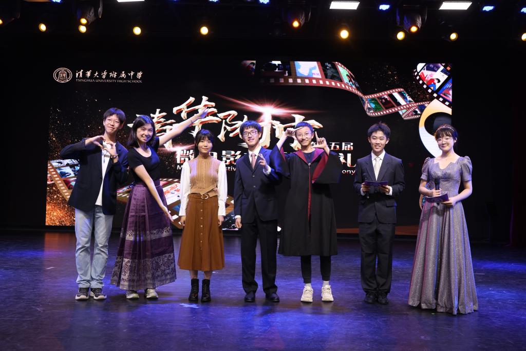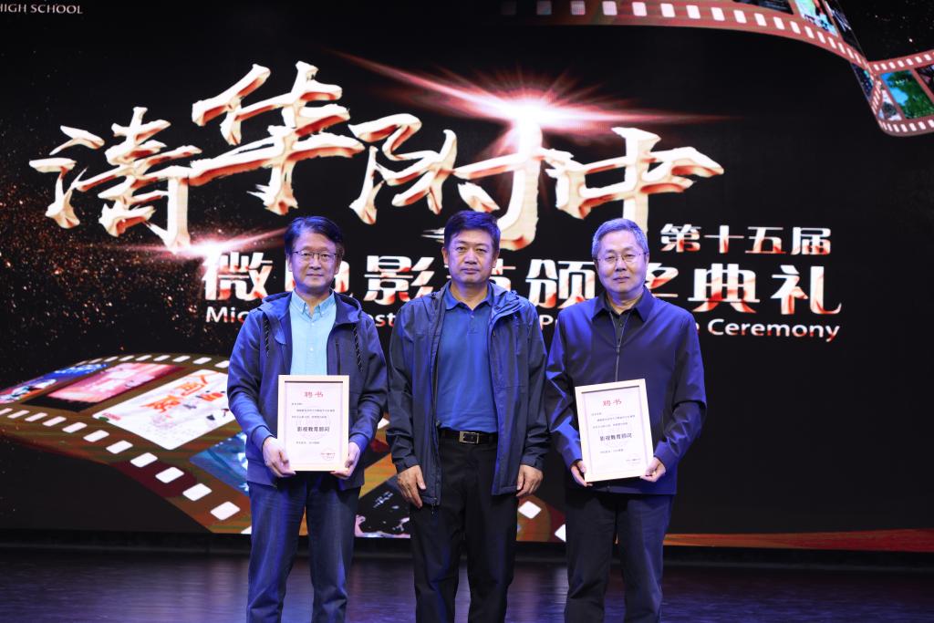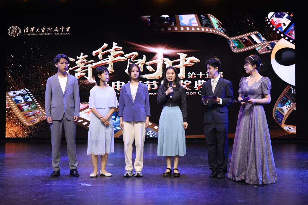 学生节上,同时举行了第十五届微电影节的颁奖典礼。活动邀请北京电影学院中国电影文化研究院书记、诗人、作家王昱华老师,作家网总编辑、北京微电影产业协会会长赵智老师,中影创新电影发展有限公司副总经理、中国儿童电影制片厂原副厂长周杰老师,第15届微电影节评委,bg真人娱乐《电影创作探索》校本课主负责人、北京电影学院本硕、中国传媒大学戏剧影视学院博士、青年独立制片人张子宇老师,第15届微电影节评委、北京电影学院本硕、中国传媒大学数字媒体博士、国家美育课题组成员马铭岳老师以及bg真人娱乐校园电视台毕业台长,高19级王怡捷、张元之学长,高20级刘奕晨、安业文学长出席,为镜头前后的附中电影人们颁奖。