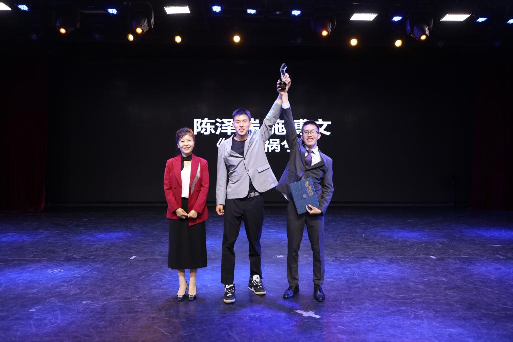 王昱华老师(左)为“最佳影片”获奖选手颁奖