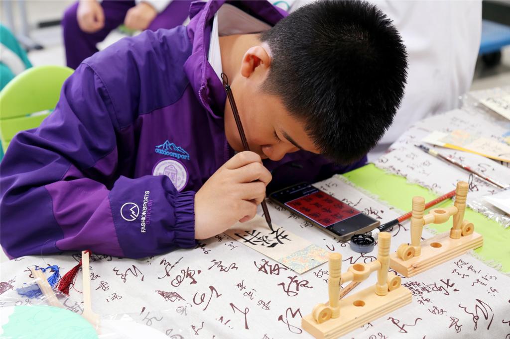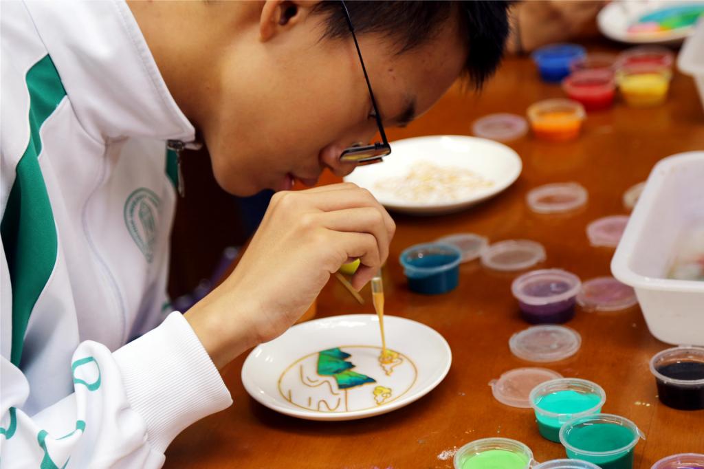 学校特邀的北京耍货、料器、景泰蓝等方面手工艺大师们现场展示了精湛技艺,同学们深受震撼。另外,同学们还观看了刺绣、榫卯营造、漆雕、彩砂画等非遗展览,从中深刻理解了每一件作品背后承载的历史故事与文化价值,立志促进非物质文化遗产的活态传承。