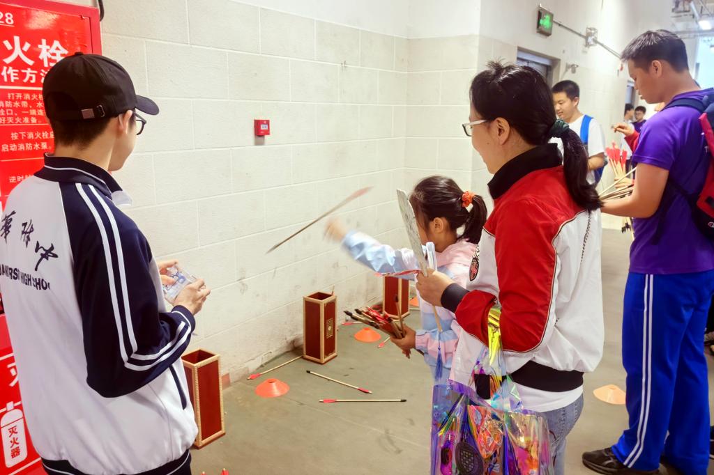 亲子运动会设计了蜈蚣竞走、投壶、连体裤、沙包掷准、亲子投篮等项目,欢声笑语不断。亲子运动会不仅增进了家庭成员之间的情感交流,还锻炼了学生的身体素质与逻辑思维,体现了学校对全面发展的重视。