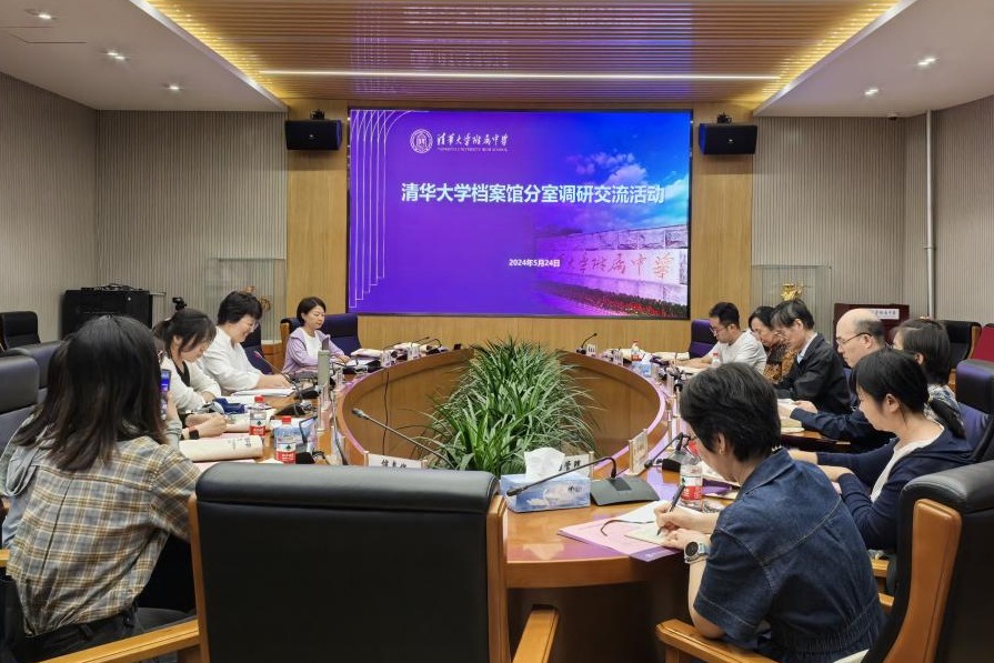 清华大学档案馆文书部主任代红、人事部主任李延召、各档案分室负责人及档案员就档案数字化、制度建设、归档等方面问题进行了深入交流讨论。