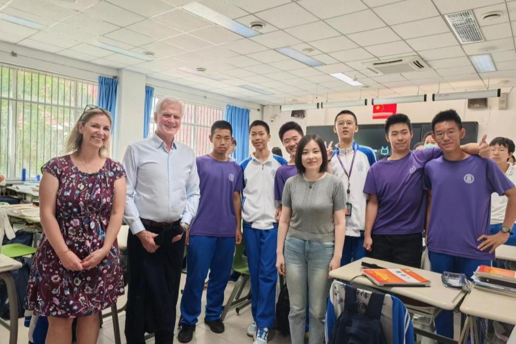 玛格丽特女王学校校长David Robertson(左二)观摩尹然老师(右四)英语课