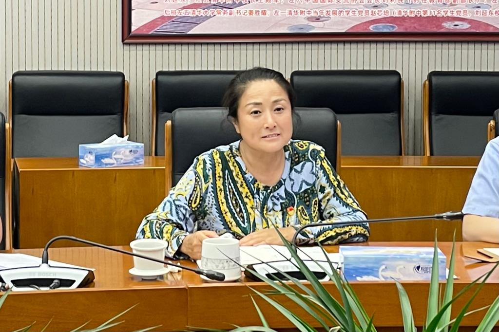 政治教研组长、政治历史地理教研组党支部书记向丽作思政课建设工作汇报。她系统介绍了附中思政课建设的工作思路与举措,强调以“八个相统一”为抓手,打造高水平思政金课;以“大中小一体化”为契机,促青年教师快速成长;以跨学科融合加强协同育人;以“大思政课”拓展全面育人新格局。此外,她就今后思政课建设的设想和规划进行了分享。
