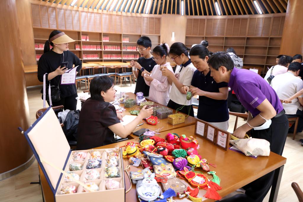 签到后,教职工带着家属到校园里8个打卡活动点参与活动。每个打卡点都吸引了许多老师和家人参与,气氛热烈。