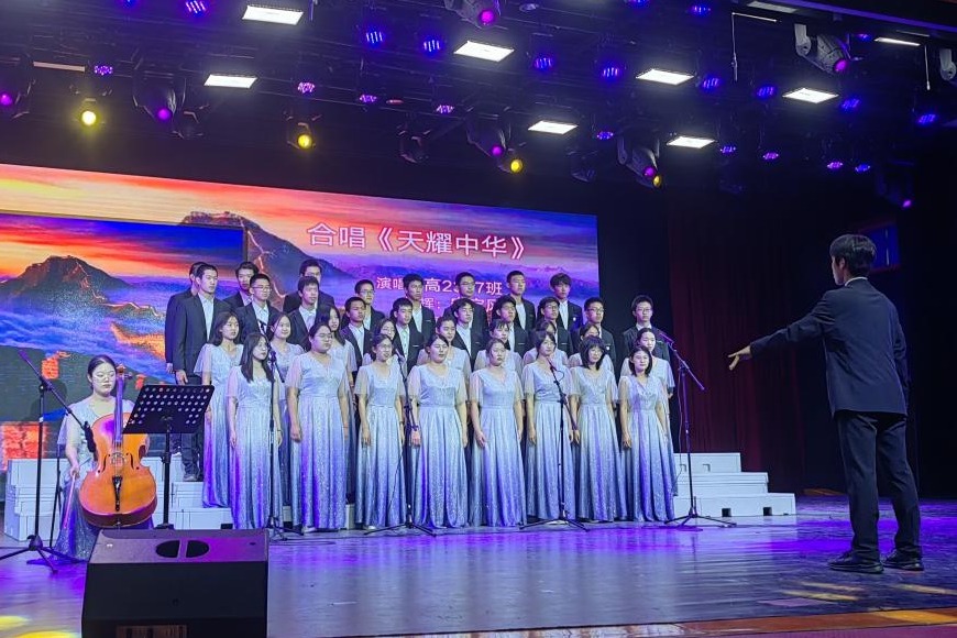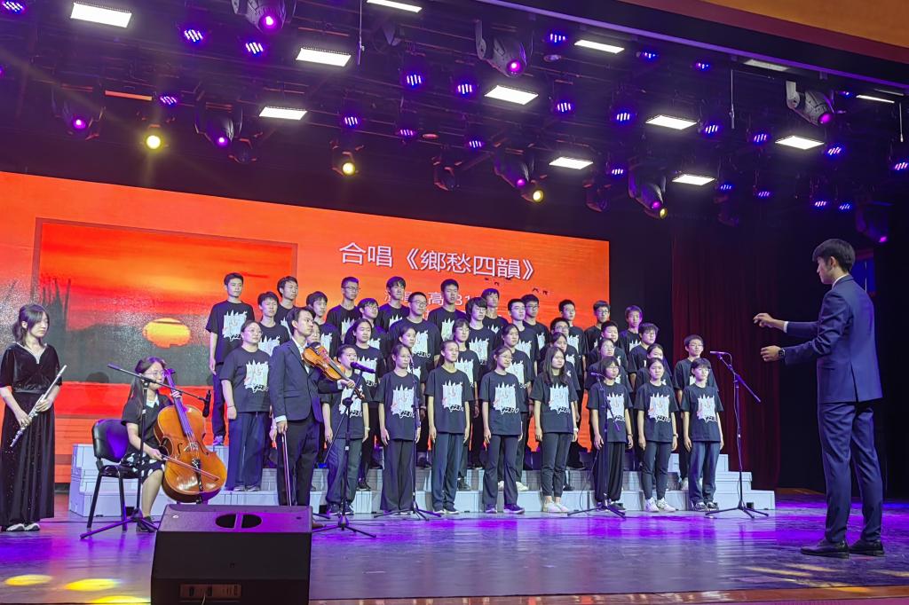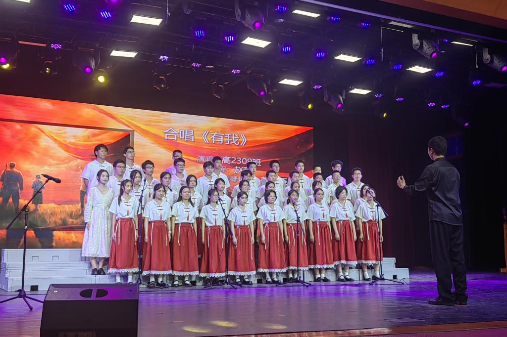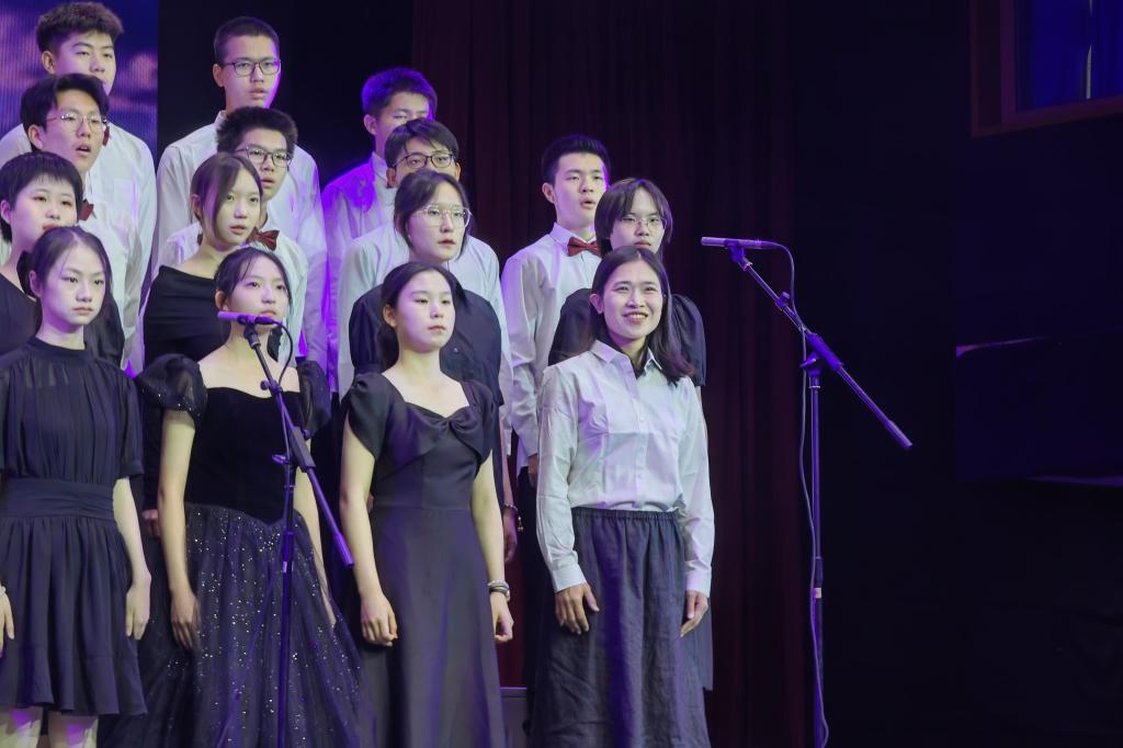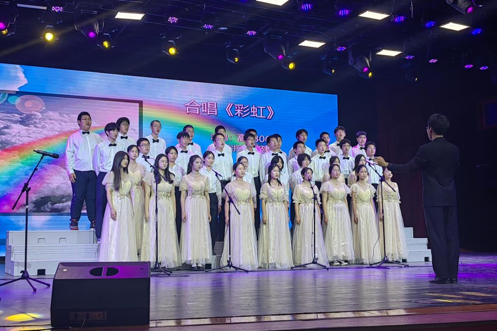 接下来,高23学部各班依次登台,为大家带来了精彩纷呈的合唱节目。从歌唱祖国的《红旗飘飘》《我爱你中国》《天耀中华》,到唯美空灵的《贝加尔湖畔》《大鱼》《彩虹》,再到深情动人的《再回首》《追寻》《从前慢》,同学们各显神通,合唱、指挥、伴奏浑然交融,为全场观众奉献了一场视觉和听觉盛宴。