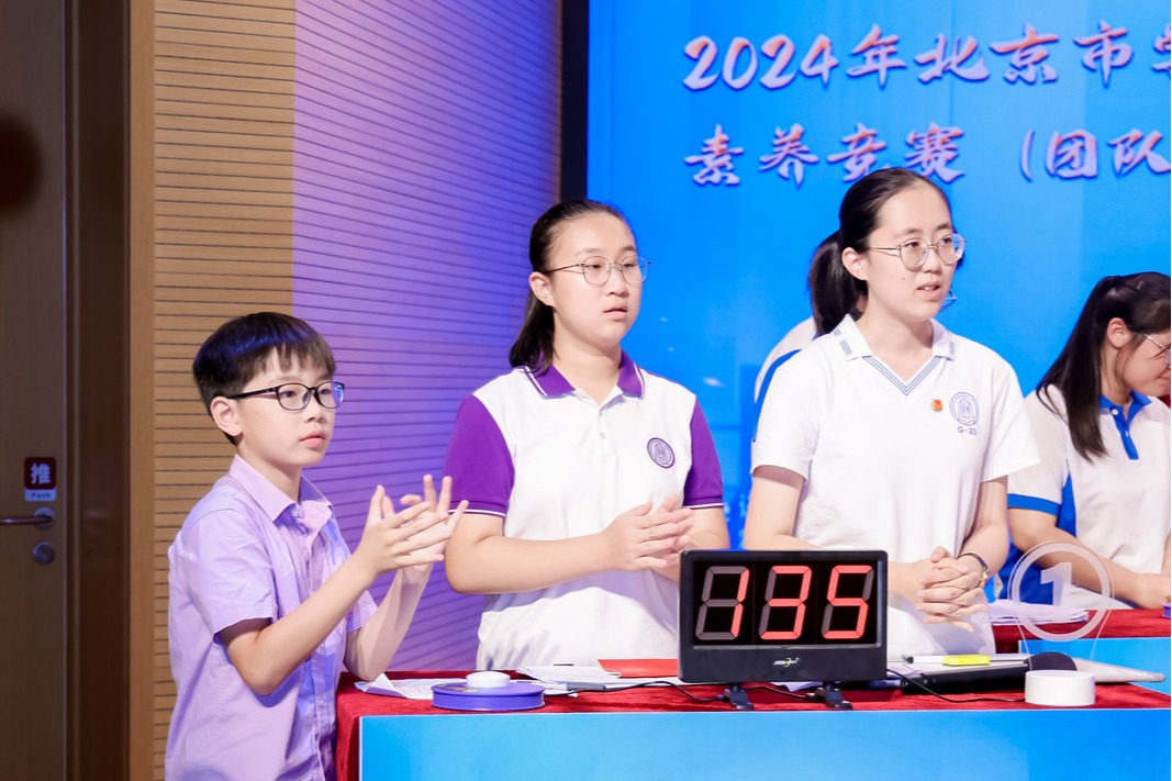 6月14日,法治素养竞赛决赛在北京学校小学部礼堂举行。在激烈的角逐中,bg真人娱乐高一4班魏子茗、初一15班李哲漪和清华附小包都阳同学组成的海淀代表队在决赛中荣获季军。