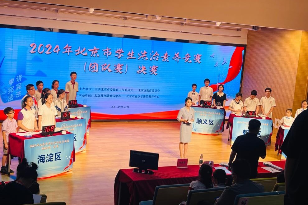 为全面学习贯彻党的二十大精神,深入学习贯彻习近平法治思想,普及宪法知识、弘扬宪法精神、树立宪法权威,6月14日,由中共北京市委教育工作委员会、北京市教育委员会主办、北京市青少年法治教育中心承办的“2024年北京市学生法治素养竞赛(团队赛)决赛成功举办。