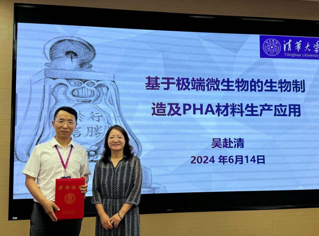 吴赴清教授带来了主题为“基于极端微生物的生物制造及PHA材料应用”的讲座。吴教授详细介绍了极端微生物在生物制造领域的应用,特别是其在生产生物可降解材料PHA(聚羟基烷酸酯)中的潜力。通过生动的实例和详实的数据,吴教授向学生们展示了生物制造的前沿技术以及其对环保和可持续发展的重要意义。他鼓励有志于从事生物科学的学生们,要勇于探索未知,投身于这一充满希望的领域。