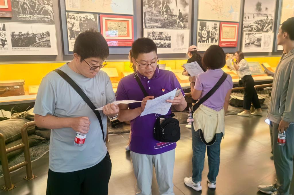 随后,全体党员以支部为单位进行参观学习,同时以展览内容为蓝本,进行了一场趣味生动、体验深刻的“‘赶考’之路上的党纪之光:红游香山答题挑战”活动。答题挑战不仅是一次知识的较量,更是一次信仰的考验。通过学习珍贵的历史文物资料,党员们更加深入地了解了中国共产党在香山革命历史时期的光辉历程和伟大成就,并与支部成员们共同探讨交流,齐心协力地完成了党纪专题的“香山答卷”,现场学习气氛热烈。