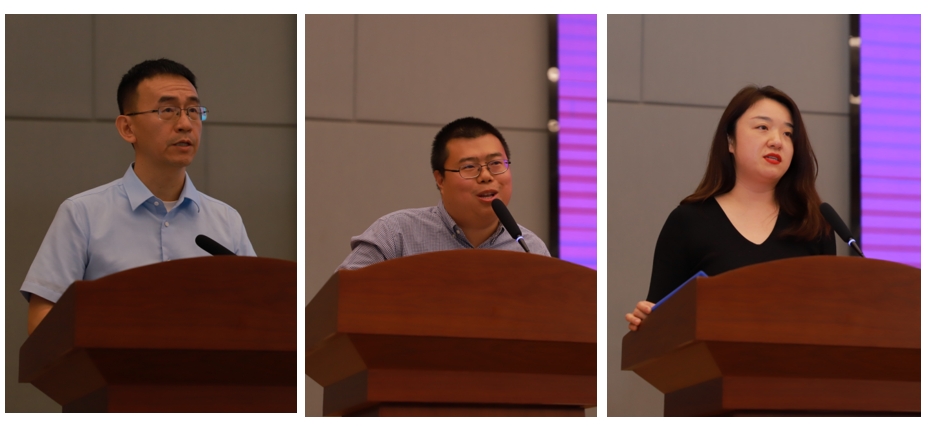 曹海翔(左)、曾繁纲(中)、白静(右)在总结会上致辞