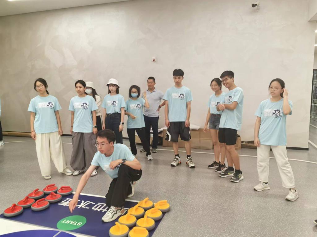 甫智方舟队员在清华北体育馆体验冰壶运动