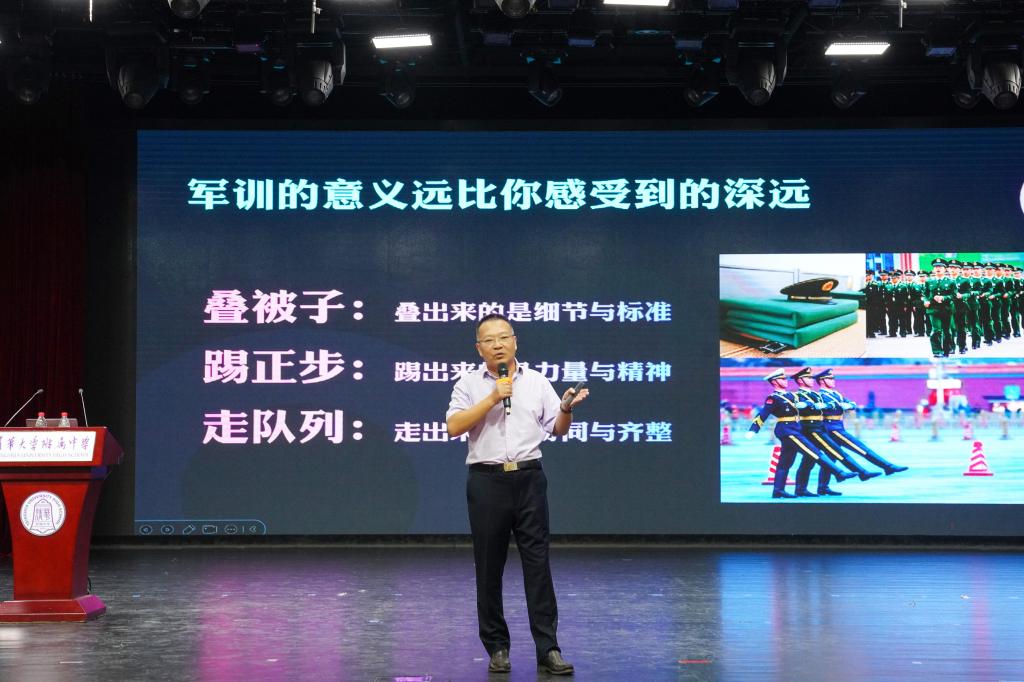 青春有为,强国有我。8月19日上午,bg真人娱乐初24学部新生国防教育开营仪式在操场举行,学部全体学生、学生发展中心领导、干事、班主任,以及部队领导、教官共700余人参加了开营仪式。参训部队领导、bg真人娱乐副校长白雪峰等出席。白雪峰老师宣布国防营任职决定、为国防教育营授旗、下达开营命令。