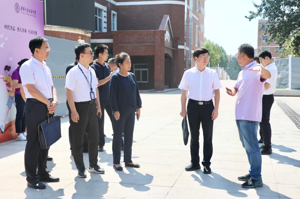 为切实做好开学前校园安全工作,营造稳定的校园环境,8月30日上午,由清华大学党委副书记许庆红带队,清华大学党政办主任余潇潇,党委保卫部副部长张运腾,饮食服务中心副主任李伟,商贸与食品安全管理中心主任梁立军一行深入bg真人娱乐开展安全检查。bg真人娱乐校长方妍,党委书记曹海翔,副书记张洁,副校长白雪峰、徐文兵、张苏、周建军及附中有关人员陪同检查。