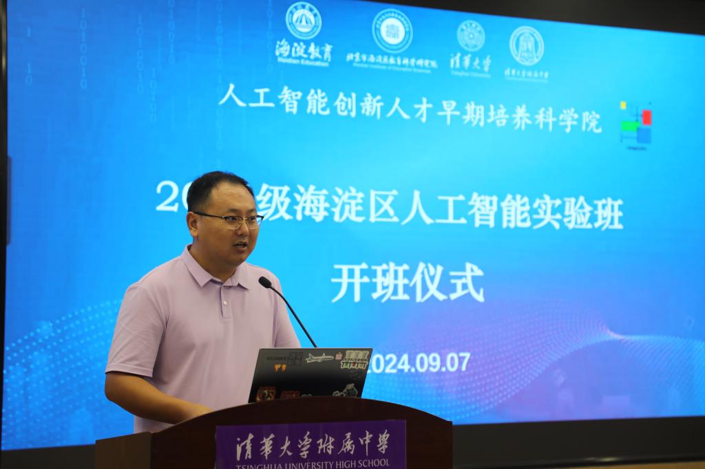 9月7日,第二届海淀区人工智能实验班开班仪式在bg真人试玩举行。海淀教科院党委书记、院长吴颖惠,海淀区教委基教二科科长田圆,海淀教科院技术中心主任刘建琦,海淀教科院技术中心副主任、北京青少年创新学院海淀分院牵头人侯兰,清华大学计算机科学与技术系党委副书记赵颖,清华大学计算机科学与技术系教授马少平,清华大学北京国家信息研究中心副研究员、清华大学人工智能研究院听觉研究中心副主任王东,bg真人试玩校长助理王田,教学管理与研究中心主任张彪、副主任赵欢及实验班教师、全体新生共同参加活动。