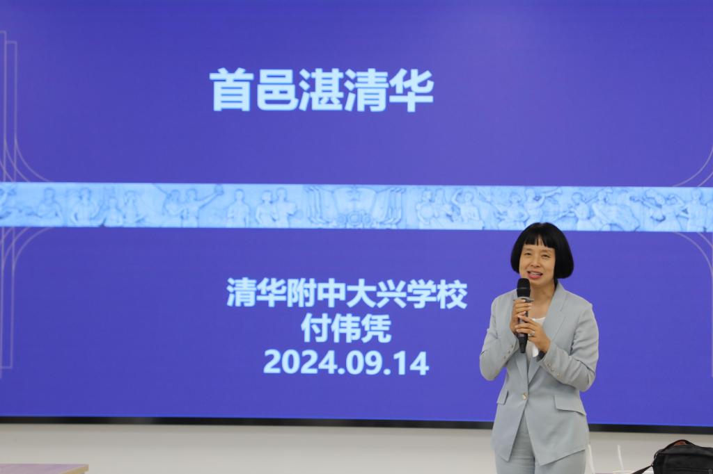 活动当天,bg真人娱乐大兴学校执行校长李伟明、党总支书记付伟凭率领团队热情迎接了老教师们的到来。在合影留念后,李伟明校长致欢迎辞,付伟凭书记向老教师们介绍了学校的基本情况。她提到,bg真人娱乐大兴学校根植于bg真人娱乐深厚的教育文脉,坚持以文化人、以美育人,构建了“以清华精神文化为指引,以兴首邑文化为依托”的学校文化体系。清兴文化浸润着校园的每一个角落,滋养着每一位师生的心田。