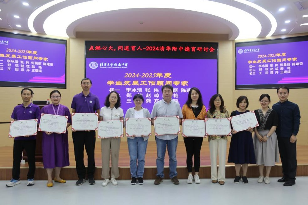 初中学部主任为初中学生发展工作顾问专家颁发聘书并合影