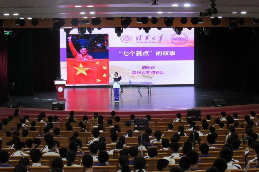 10月10日,初23学部邀请中国男子乒乓球原运动员和教练员、现任清华大学副教授刘国正老师,分享他和乒乓球“七个赛点”的故事。学生发展中心副主任李冰清老师、体育组付帅老师、初23学部主任张晓琼老师、副主任周小玲老师,以及全体班主任与同学们参与了本次活动。活动由初2304班冯潇伊同学主持。