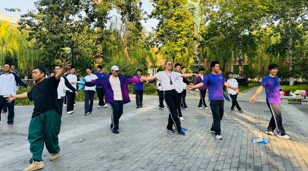 高2217班学生在教练指导下学习舞蹈