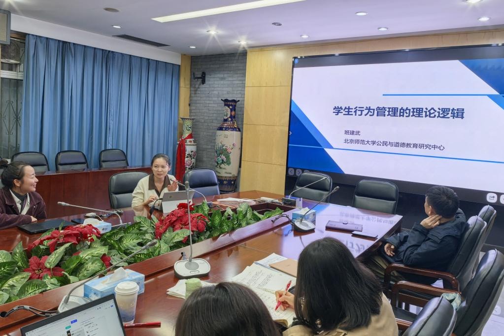 刘娇杨老师延续了上述话题。她以班建武老师提到的“三水平六阶段”为例,认为要先了解和判断学生道德心智所处的层次,以此作为德育工作的基础。接下来,她还结合其他与会教师的经验,着重探讨了带班模式的自主运行机制,为老师们提供了可资借鉴的参考。