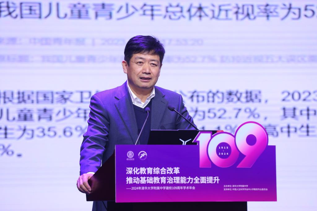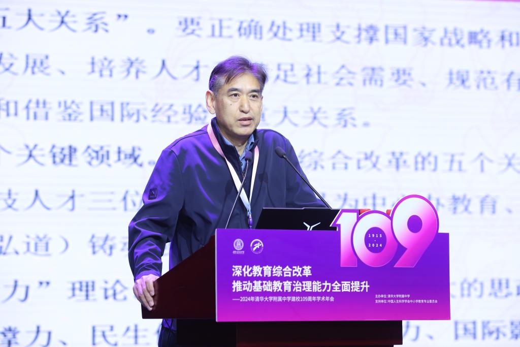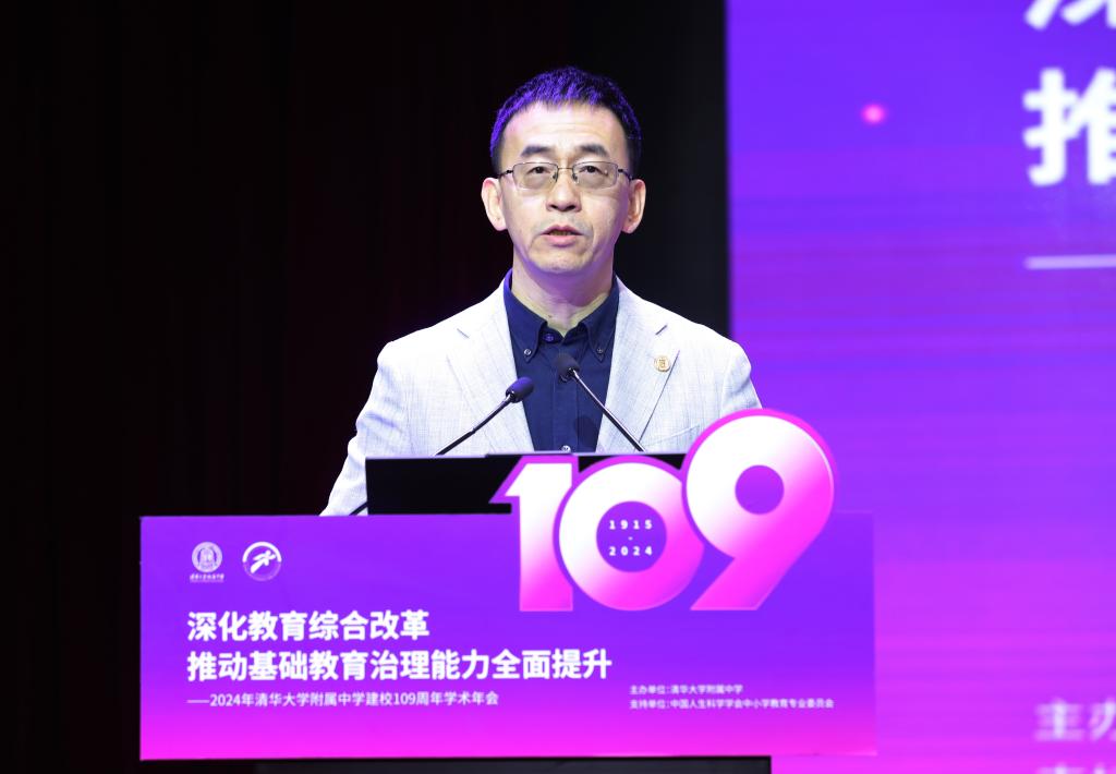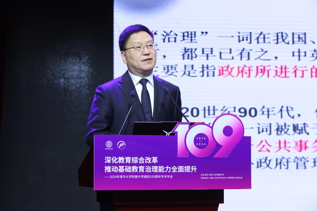 中国教育学会副会长兼秘书长杨银付在致辞中首先对bg真人试玩建校109周年表示祝贺。他在致辞中表示,以今年109周年校庆为契机,学校举办主题为“深化教育综合改革,推进基础教育治理能力全面提升”的学术论坛,是学习贯彻落实党的二十届三中全会精神和全国教育大会精神的重要举措。他提出,建设教育强国是一项复杂的系统工程,要深刻把握教育的政治属性、人民属性、战略属性,坚持体制机制创新和科技创新“双轮驱动”,深化教育综合改革。要坚持科技是第一生产力、人才是第一资源、创新是第一动力;深入实施科教兴国战略、人才强国战略、创新驱动发展战略。要坚持党对教育工作的全面领导,在党的领导下深化教育综合改革,在党的领导下加快建设教育强国,在党的领导下办人民满意的教育。