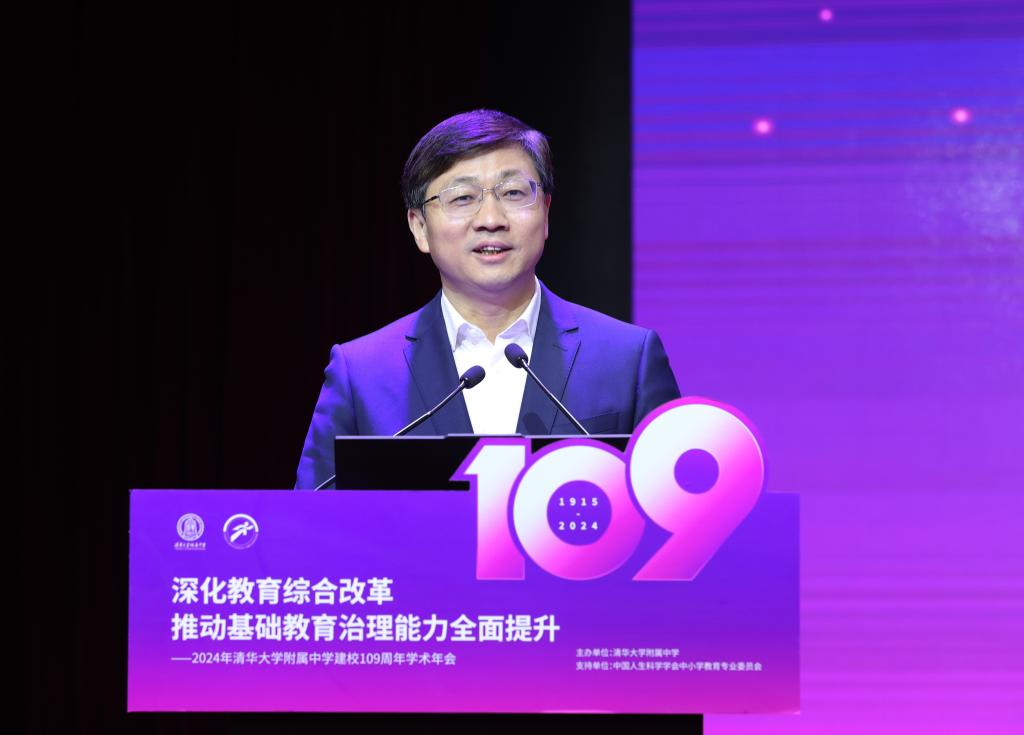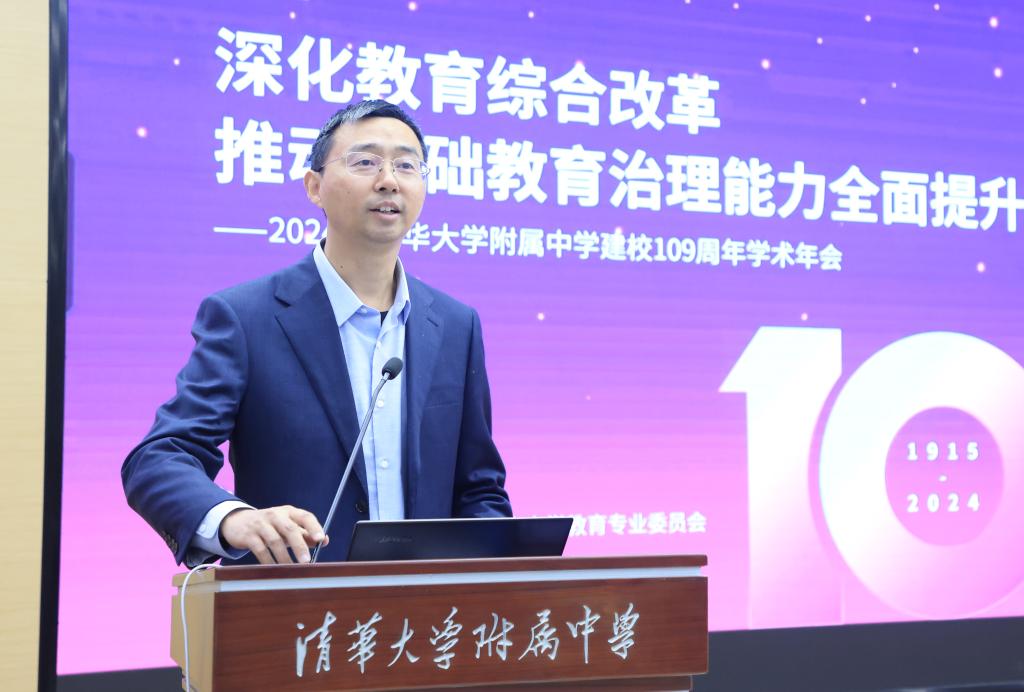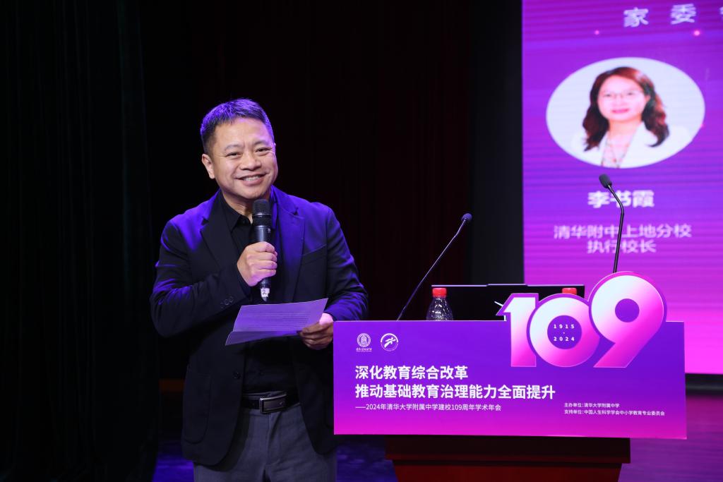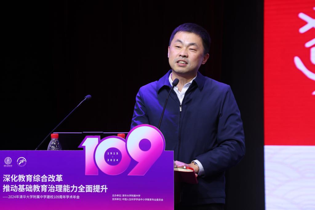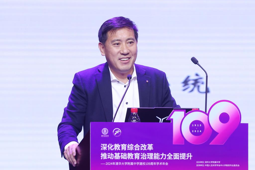 清华大学党委副书记许庆红在致辞中首先对一代代实干兴校、接续奋斗的bg真人试玩人给予肯定,对bg真人试玩在基础教育现代化进程中探索高质量发展取得的优异成绩表示祝贺!他指出,bg真人试玩打造适合的治理体系,锻造适应的治理能力,体现了学校贯彻党中央决策部署,将党的二十届三中全会精神转化为高质量发展的生动实践。今天探究“深化教育综合改革,推动基础教育治理能力全面提升”是附中走在时代前列,探寻学校系统化、长远发展的大课题,也是附中扛起一所中学在教育领域的使命担当,用行动回答“教育强国,基教何为,附中何为”的时代命题。他表示,在新的历史起点上,清华大学将会继续大力支持附中发展,助力附中奋力开拓世界一流中学建设的新局面,为全面建成社会主义现代化强国,实现中华民族伟大复兴作出更多贡献!