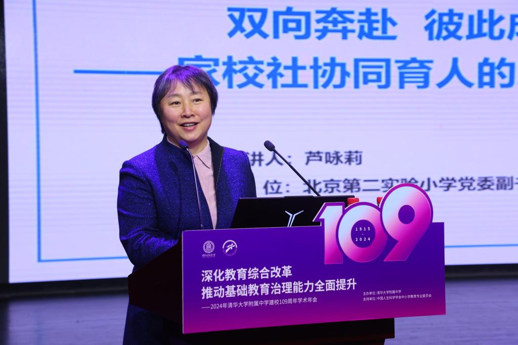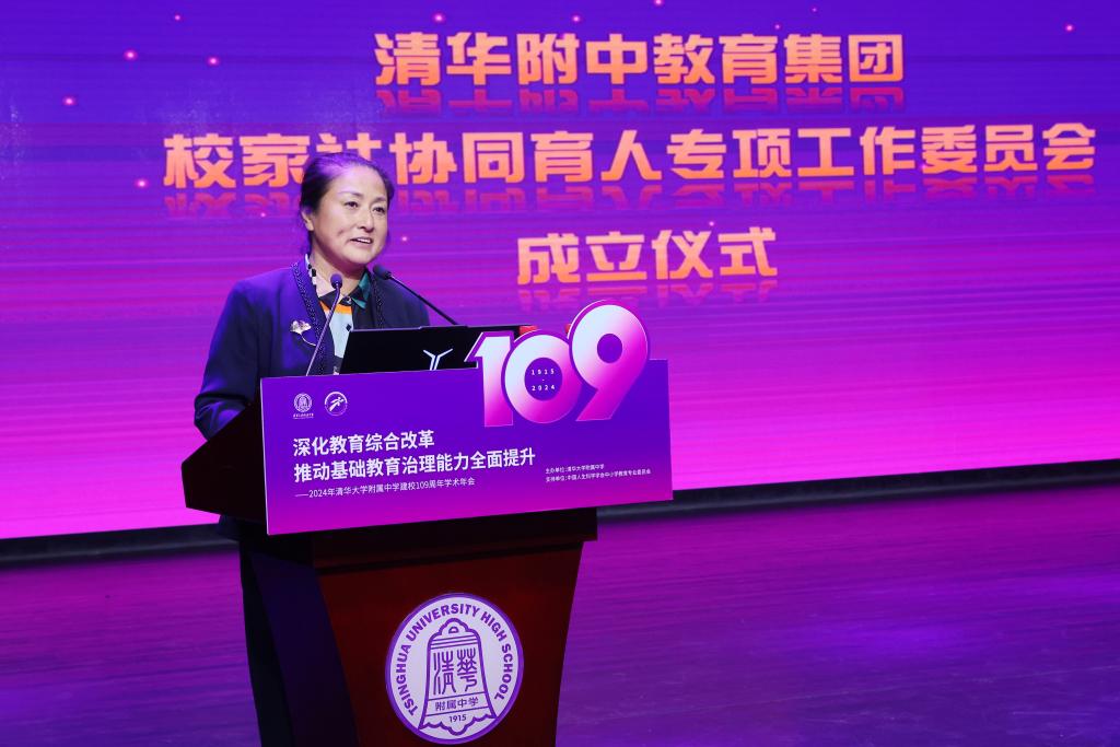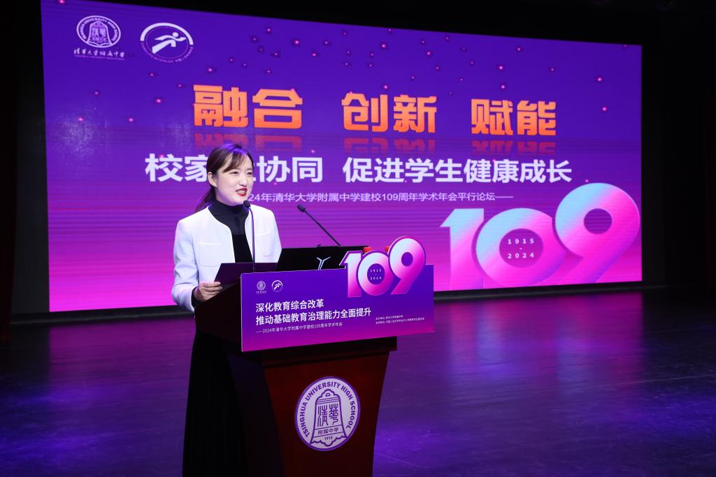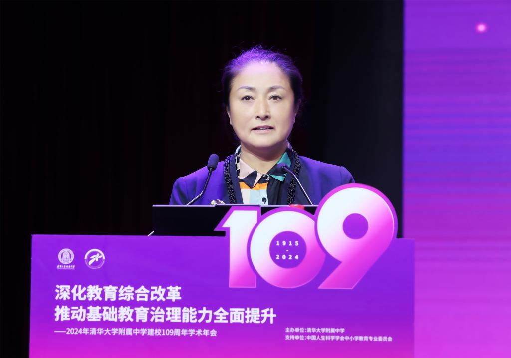 清华大学党委副书记许庆红在致辞中首先对一代代实干兴校、接续奋斗的bg真人试玩人给予肯定,对bg真人试玩在基础教育现代化进程中探索高质量发展取得的优异成绩表示祝贺!他指出,bg真人试玩打造适合的治理体系,锻造适应的治理能力,体现了学校贯彻党中央决策部署,将党的二十届三中全会精神转化为高质量发展的生动实践。今天探究“深化教育综合改革,推动基础教育治理能力全面提升”是附中走在时代前列,探寻学校系统化、长远发展的大课题,也是附中扛起一所中学在教育领域的使命担当,用行动回答“教育强国,基教何为,附中何为”的时代命题。他表示,在新的历史起点上,清华大学将会继续大力支持附中发展,助力附中奋力开拓世界一流中学建设的新局面,为全面建成社会主义现代化强国,实现中华民族伟大复兴作出更多贡献!