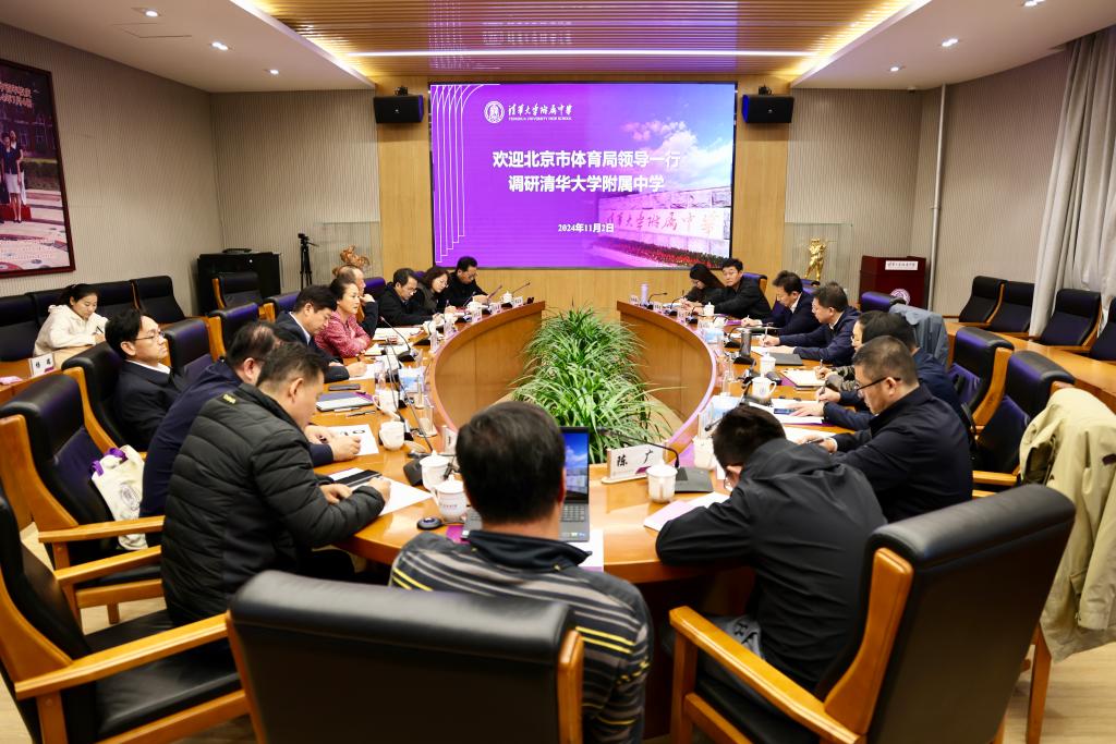 11月2日,北京市体育局党组书记、局长于庆丰,党组成员、副局长石风华,一级巡视员范亚兵,二级巡视员陈雪松,办公室主任苏志军,青少年体育处处长于立超,海淀区体育局党组书记、局长白雪罡,北京市先农坛体校网球队女队主教练杨伟光,北京市体育局青少年体育处干部刘雨蓓一行来校调研,并围绕青少年体育后备人才培养等方面展开交流研讨。bg真人试玩校长方妍,副校长白雪峰、徐文兵,部分集团校执行校长,以及相关领导干部和体育教师陪同调研。
