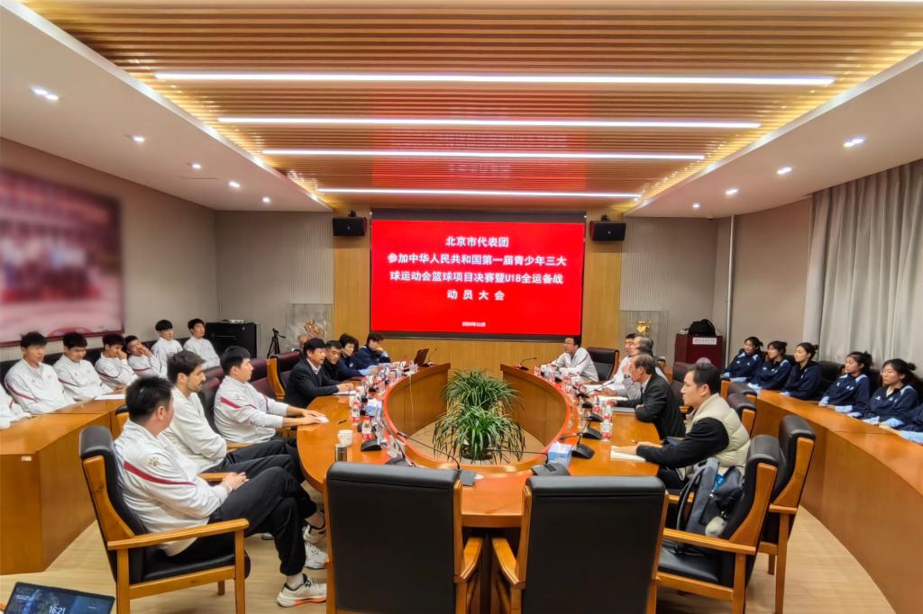 11月14日下午,首届青少年三大球运动会篮球项目北京市代表队动员会在bg真人娱乐召开。北京市体育局竞技体育处处长苏峻,北京市篮协主席孙国华、秘书长薛正武等主管领导出席会议。bg真人娱乐副校长白雪峰、校长助理罗健以及教练团队共同参与了此次会议。