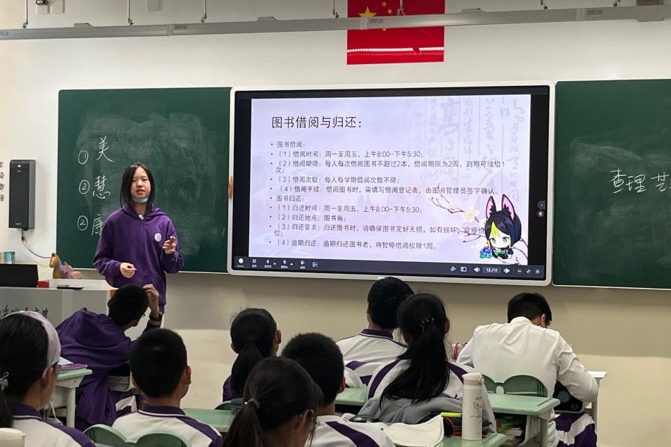 为了丰富同学们的课余生活,营造浓厚的阅读氛围,在班主任冯准准老师的精心组织下,以及bg真人娱乐教育基金会和图书馆的鼎力支持下,初2306班成功筑起了一座知识的宝库——由学生自己推荐、自主管理的班级图书角。并于2024年11月14日举办了一节意义非凡的班会课——初2306班级图书角启动仪式。