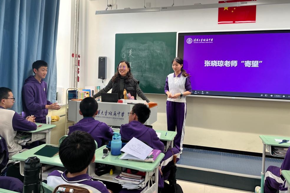 张晓琼老师正式为班级图书角揭幕,并带来了“用读书的感悟去生活,用生活的感悟去读书”的学部寄语。张老师提出,希望同学们通过多读书,成为一个有智慧、有温度、会思考的人。