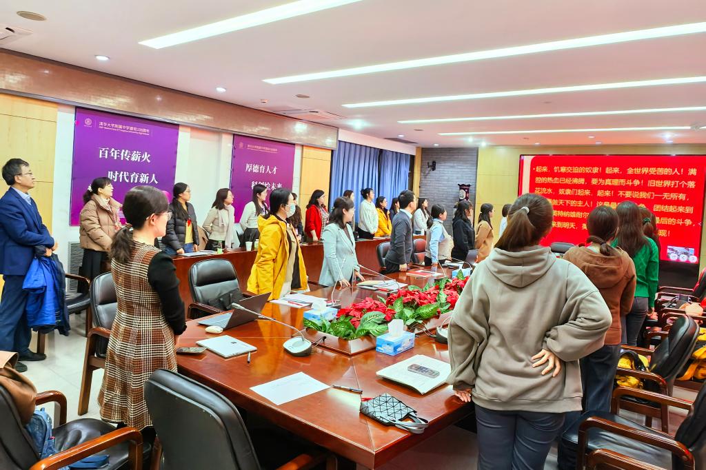 在齐声合唱国际歌的歌声中,支部书记黄丽梅宣布本次预备党员发展大会顺利结束。