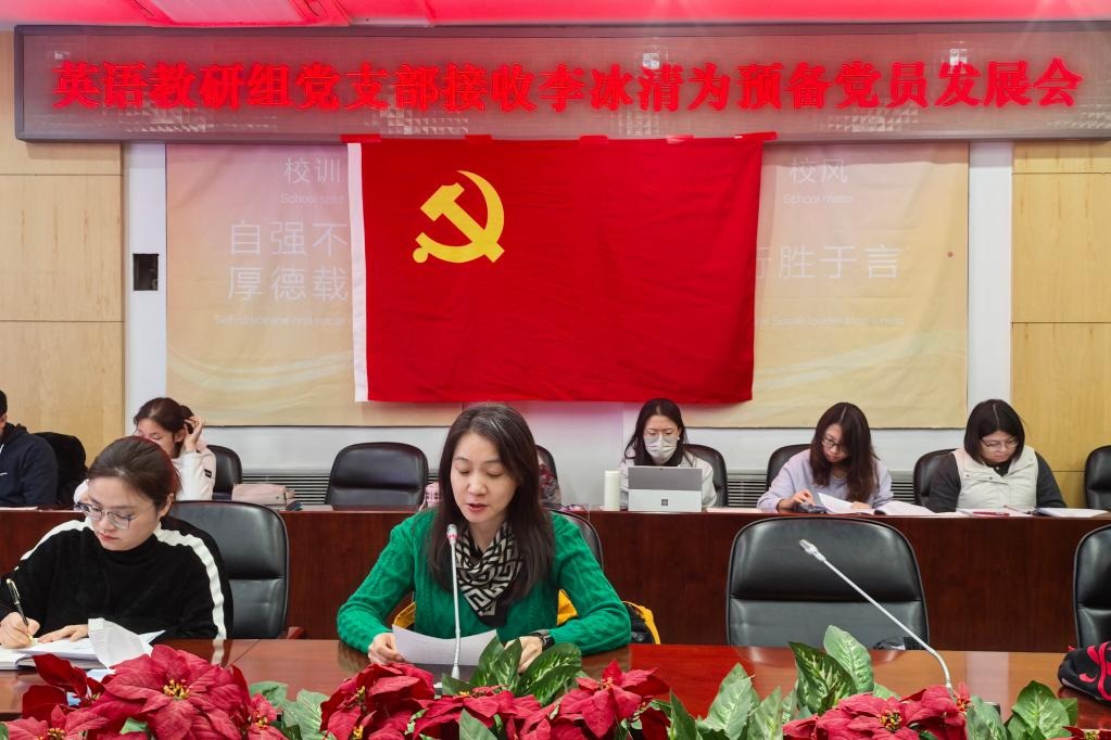 11月21日下午,bg真人试玩英语教研组党支部在B102会议室召开预备党员发展大会。清华附中党委书记曹海翔、英语教研组党支部全体党员和入党积极分子参加了本次预备党员发展大会,会议由支部书记黄丽梅主持。