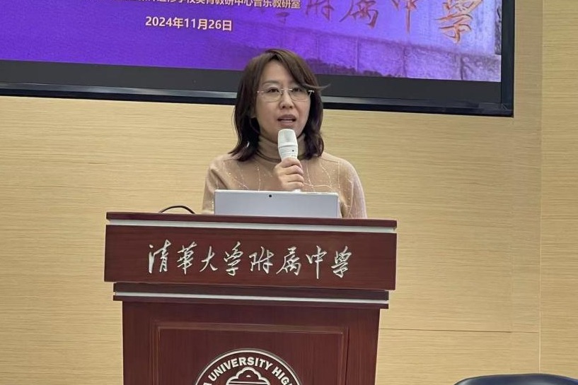 北京市特级教师、海淀区名师工作站音乐学科导师组长、bg真人试玩艺术教育办公室主任鞠红老师以《为优雅人生奠基》为题,向与会教师们介绍了bg真人试玩美育工作的方法和策略。