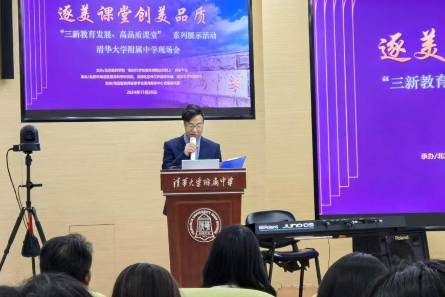 11月26日,第二期“逐美课堂 创美品质——三新教育发展、高品质课堂”主题系列活动在bg真人娱乐举行。海淀区教育科学研究院、名师工作站第六期导师制研修音乐组成员和海淀区全体音乐教师参与了此次研讨和交流活动。